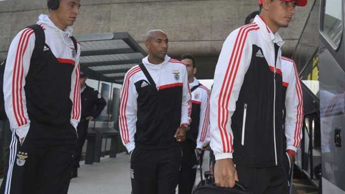 De semblantes carregados, os futebolistas foram entrando no autocarro, destacando-se Rodrigo, que, à semelhança de Cardozo, falhou uma grande penalidade, por estar a coxear da perna direita - também Siqueira apresentava mazelas na perna direita, com os gémeos ligados.