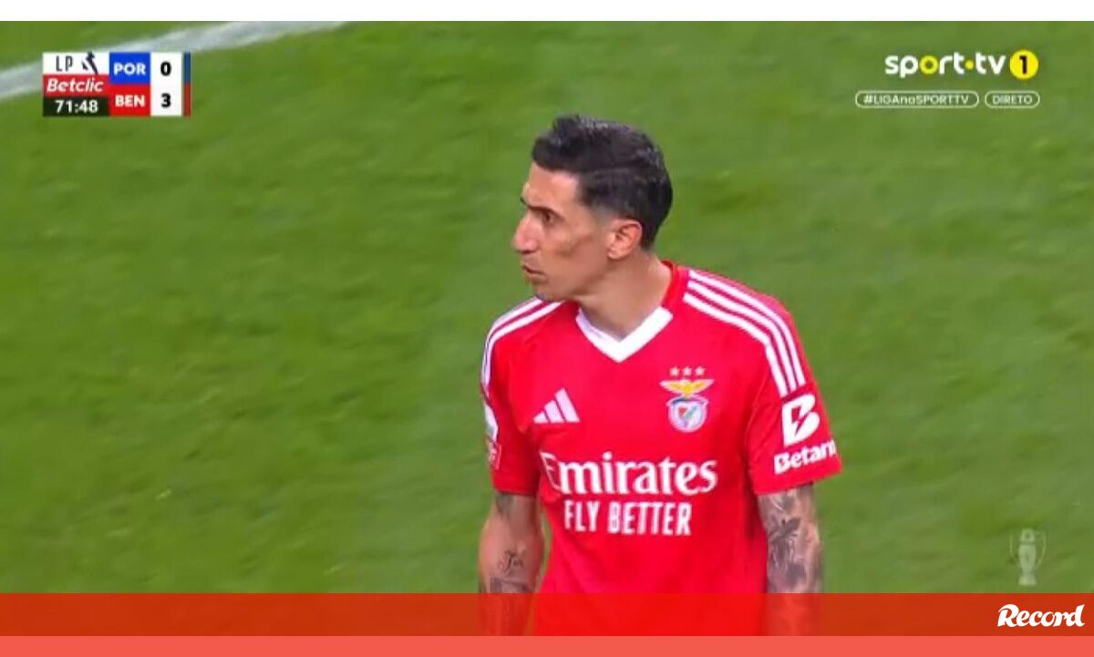 Di María não gostou de ser substituído no clássico com o FC Porto (1-4). Assim que se apercebeu de que era o escolhido para sair aos 72’ para a entrada de Schjelderup, o experiente argentino baixou a cabeça e mostrou uma expressão de desagrado.