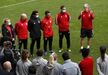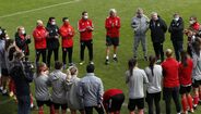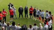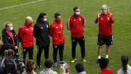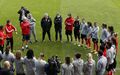 No final da sessão matinal de trabalho, realizada no campo n.º 1 do Benfica Campus, o plantel benfiquista foi surpreendido pela presença de Luís Filipe Vieira e do técnico da equipa principal masculina, que deixaram palavras de confiança ao grupo comandado por Luís Andrade.