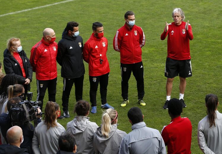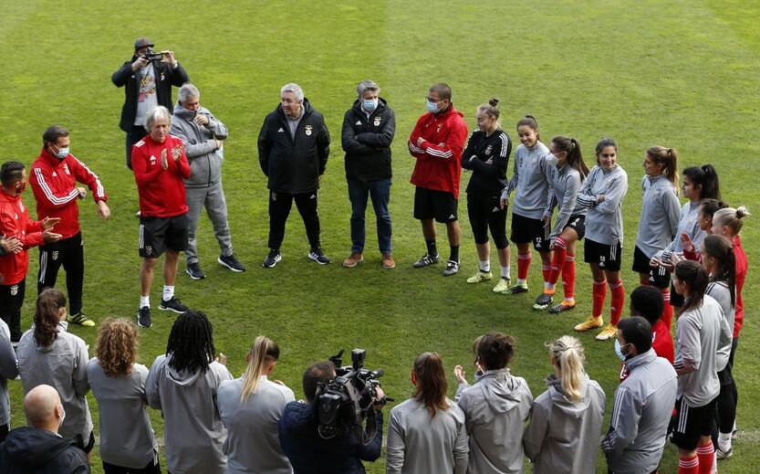 O presidente do Benfica e o treinador Jorge Jesus deixaram esta terça-feira, no Seixal, uma mensagem de apoio à equipa de futebol feminino que vai defrontar o Chelsea, na primeira mão dos 16 avos de final da Liga dos Campeões.