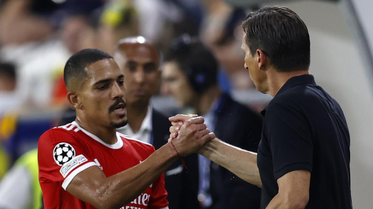 Sobre Roger Schmidt, o jogador contratado ao Fluminense e que chegou à Luz pela mão de Jorge Jesus só tem elogios a fazer. A convivência que ele tem com os atletas, tanto os que jogam como não jogam, é igual. O cumprimento dele sentes que é diferente, ele olha-te nos olhos. Está sempre a sorrir. Traz-nos uma energia boa. Procuramos jogar por ele também.