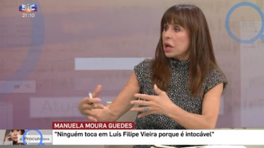 E prossegue: "Só não percebo é porque não fez o mesmo perante o ataque pessoal e direto (de segunda feira passada, na SIC) de Manuela Moura Guedes, mulher do vice-presidente e administrador da SAD do Benfica, José Eduardo Moniz! Depois de ter ouvido a 'Procuradora' acusar o presidente do Benfica de ser um 'intocável' (com toda a conotação negativa dessa designação), a propósito da situação do Novo Banco (ex-BES), esperei pelos títulos dos jornais dos dias seguintes para saber se, ainda antes de Ana Gomes, ela seria alvo de um processo. E se, cumulativamente, se tinha divorciado do marido ou se tinha demitido dos cargos que ocupava na estrutura do Benfica!"