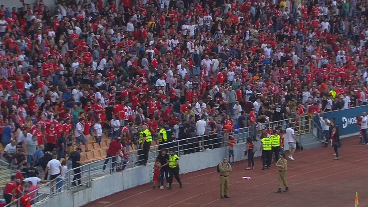 O jogo deste sábado entre Académica e Benfica foi interrompido por desacatos entre adeptos nas bancadas ainda na primeira parte.