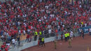 Em campo, os jogadores olhavam com ar preocupado para o que se estava a passar. Quando a situação acalmou, foram trocando bolas para não arrefecerem. No total, o jogo esteve interrompido cerca de seis minutos, entre os 39 e os 45. Aquela zona permaneceu depois sob o olhar atento de seguranças e polícias.