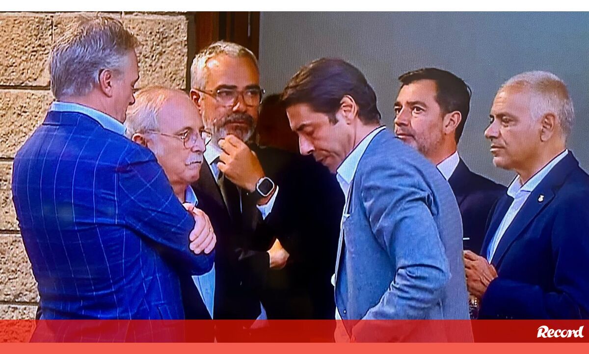 Marco Santos, diretor para o futebol dos gansos, e Pedro Machado, adjunto de Mourinho, envolvidos em momento de tensão