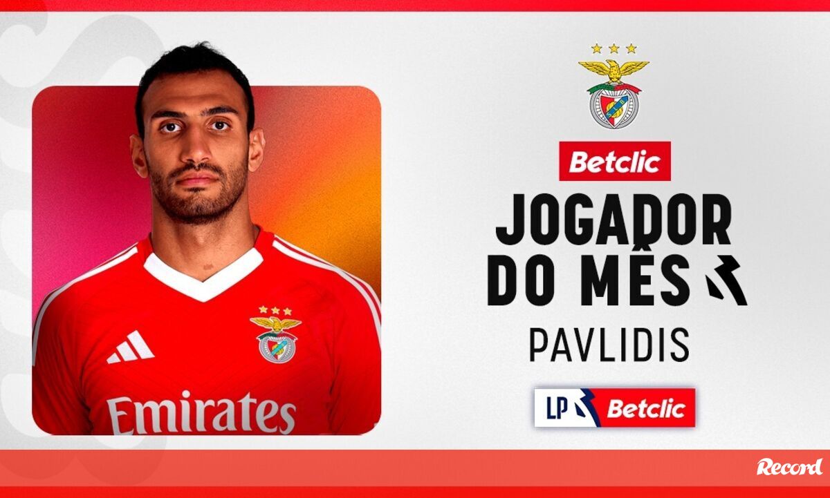 Vangelis Pavlidis, avançado internacional grego do Benfica, foi esta quinta-feira eleito o jogador do mês da Liga Portugal Betclic, durante o período de fevereiro. O camisola 14 dos encarnados recolheu um total de 23,93% dos votos dos treinadores principais do campeonato, superando a concorrência de Roger (Sp. Braga), que recebeu 11,97% dos votos, e de Óscar Aranda (Famalicão), que recolheu 6,84% das preferências dos técnicos.