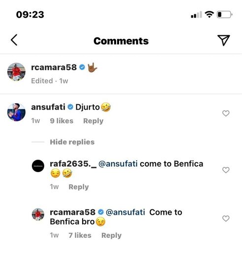 Amigos de longa data, Ansu Fati e Ronaldo Camará trocaram 'piropos' nas redes sociais, à boleia de uma publicação do benfiquista, e a conversa acabou com um curioso pedido para que o jogador do Barcelona... viesse para o Benfica.