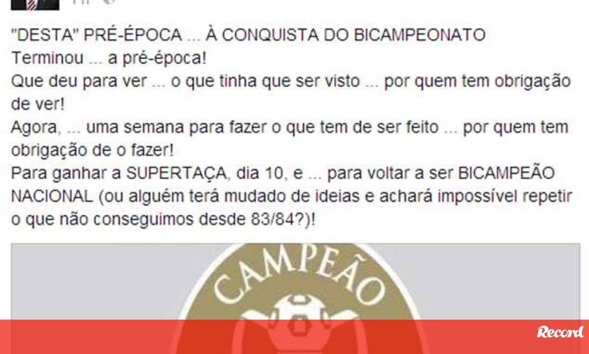 Para ganhar a SUPERTAÇA, dia 10, e ... para voltar a ser BICAMPEÃO NACIONAL (ou alguém terá mudado de ideias e achará impossível repetir o que não conseguimos desde 83/84?)!"