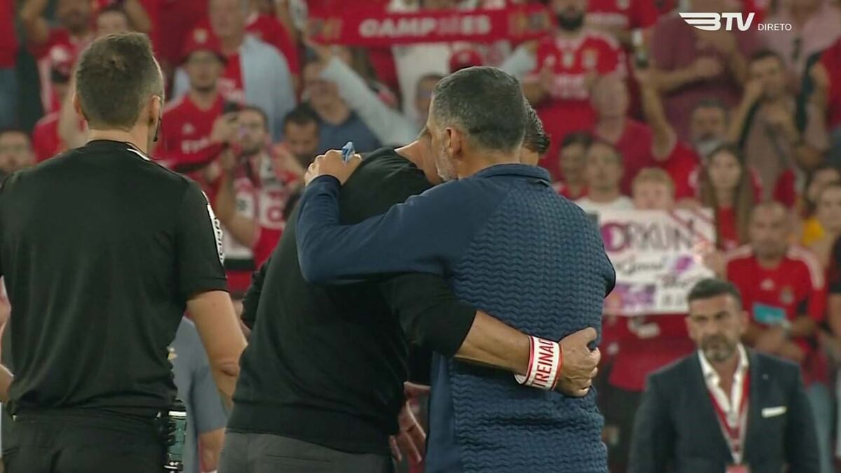 Roger Schmidt e Sérgio Conceição cumprimentaram-se com um abraço no final do clássico (1-0), tendo ainda trocado breves palavras, enquanto as equipas se despediam dos adeptos. Na conferência de imprensa, o técnico das águias foi questionado sobre esse momento e revelou o diálogo que mantiveram.