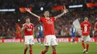 O Benfica derrotou esta quinta-feira o Marselha, por 2-1, na primeira mão dos quartos de final da Liga Europa, com golos de Rafa e de Di María.