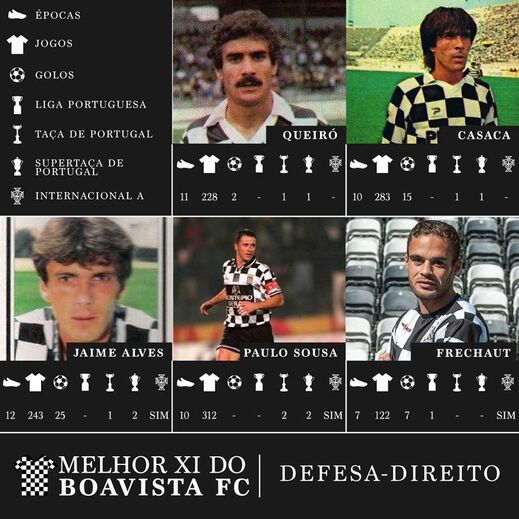 Paulo Sousa, com 45,2 % dos votos, foi eleito o melhor defesa-direito da história do Boavista, numa votação online que decorre durante todo este mês de abril para o Melhor Onze dos axadrezados.