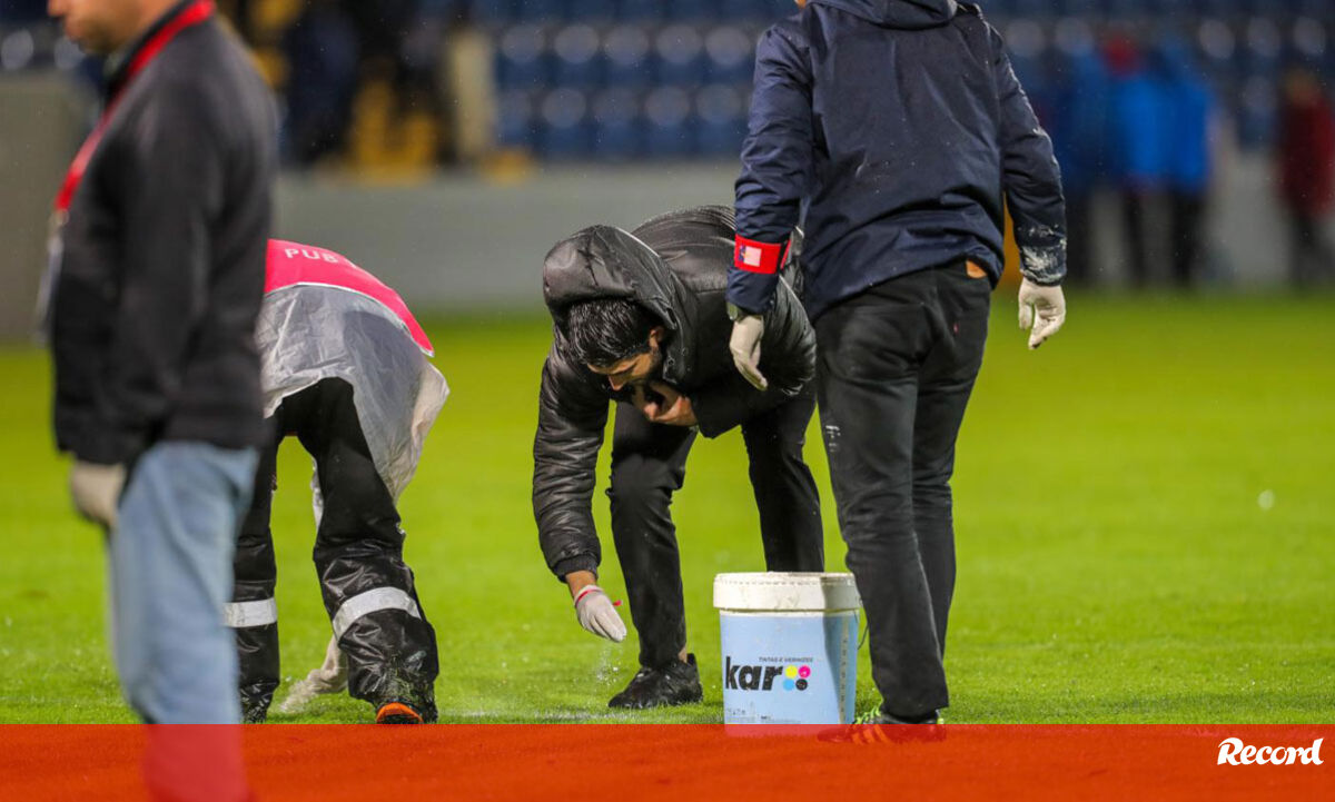 "O campo foi remarcado, contudo o Sr. Árbitro continuou a referir que o mesmo não preenchia os requisitos para o início de jogo. O C.D. Santa Clara, em conjunto com os funcionários responsáveis pelo relvado, ficou então encarregue de arranjar material para misturar com a tinta a ser reaplicada nas linhas do campo, em concreto, gesso e leite gordo. (...) Após a chegada do gesso e leite gordo, cerca de 45 minutos antes da hora do Kickoff, procedeu-se à sua mistura com a tinta e iniciou-se a remarcação do campo, o que levaria segundo o diretor de campo, aproximadamente 30 minutos. (...) Esta remarcação do campo, que inicialmente pareceu estar a resultar nas grandes áreas do retângulo de jogo, desencadeou o aquecimento das equipas. Contudo, verificou-se que tanto as linhas laterais, bem como as linhas de baliza, não conseguiam ser sinalizadas apropriadamente, mesmo com a passagem repetida do rolo de marcação do campo, o que impedia ao Sr. Árbitro validar as condições do terreno de jogo", acrescentam os delegados que estiveram de serviço no Estádio S. Miguel.