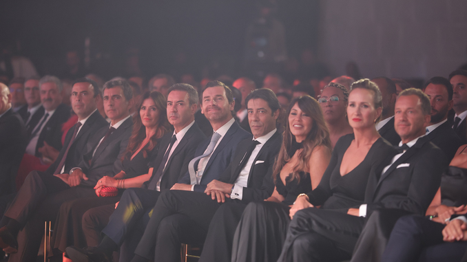 Frederico Varandas, André Villas-Boas, Rui Costa e António Salvador na primeira fila. Presidentes de Sporting, FC Porto, Benfica e Sp. Braga, respetivamente, presentes na Alfândega do Porto para assistir à Liga Portugal Awards 2024.