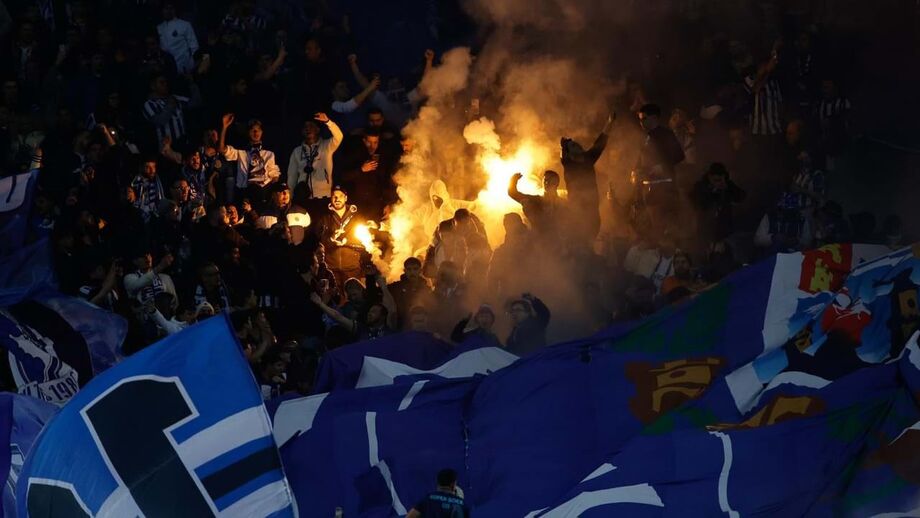 Logo aos 15 minutos, foram deflagradas algumas tochas na zona dos Super Dragões