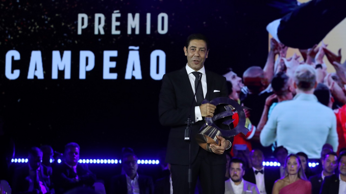 Rui Costa, presidente do Benfica, foi a próxima personalidade a subir ao palco. O presidente do Benfica recebeu o 'Prémio Campeão', relativamente ao título conquistado pelo Benfica em 2022/23, e assumiu a vontade de voltar para receber nova distinção na próxima época.