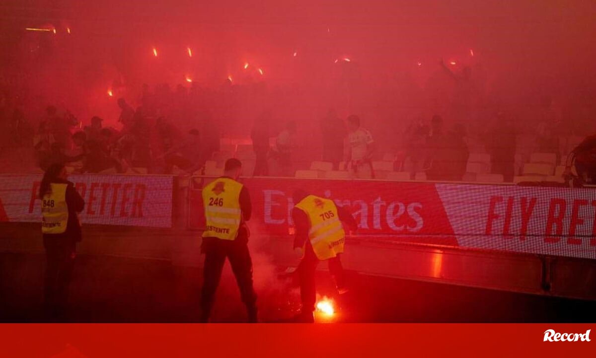Pirotecnia foi lançada para o relvado. Atingiu seguranças e fotógrafos e partida esteve parada