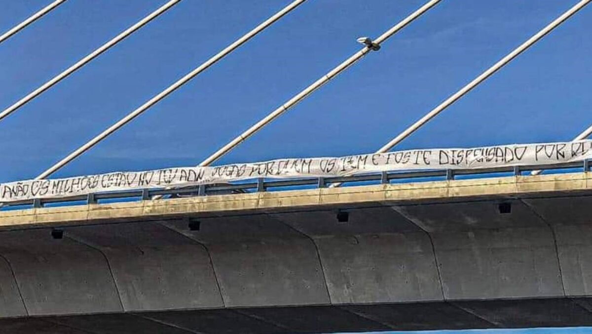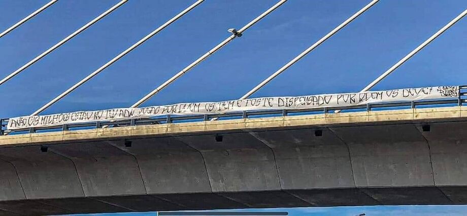 Uma tarja, alegadamente da autoria de adeptos do FC Porto, foi deixada esta terça-feira num viaduto perto do Estádio do Dragão e dedicada a Bernardo Silva, jogador do Manchester City formado no Benfica.
