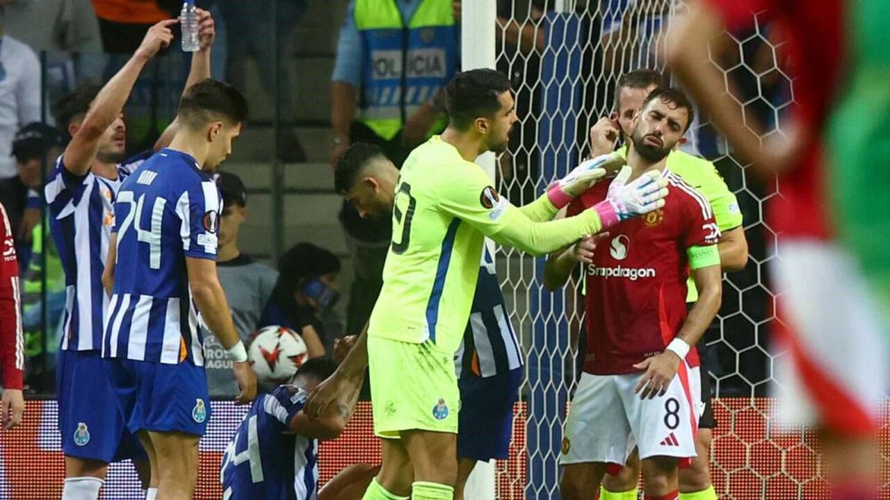 Bruno Fernandes e Diogo Costa protagonizaram um bate-boca aos 80 minutos, na sequência do lance que ditou a expulsão do médio. Após a disputa de bola entre Bruno Fernandes e Nehuén Pérez, que foi sinalizada como falta pelo juiz da partida, Diogo Costa abriu os braços destacando o perigo da ação.