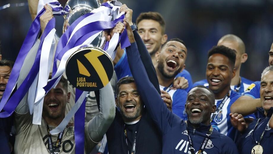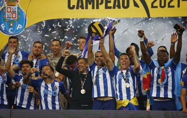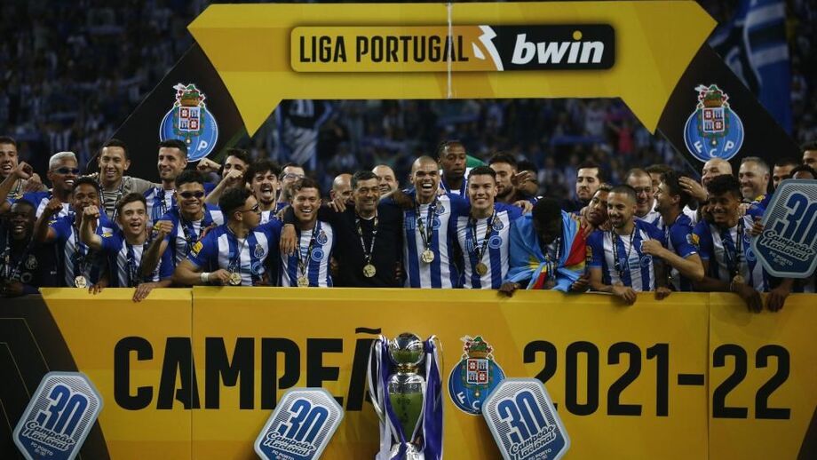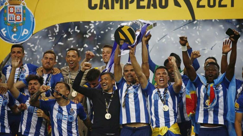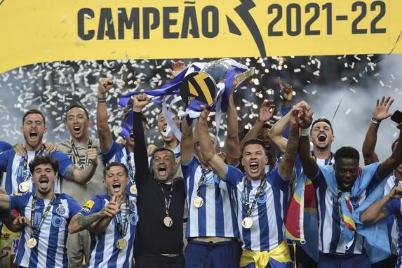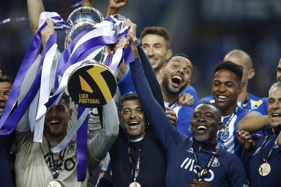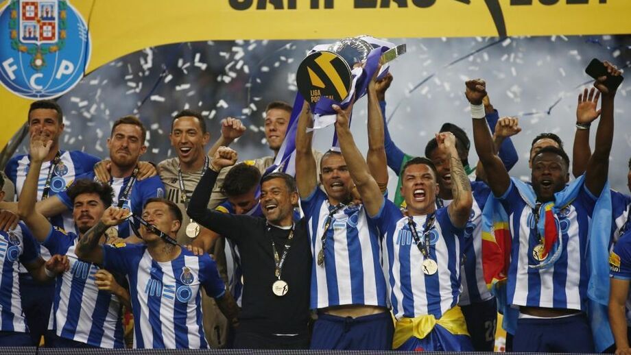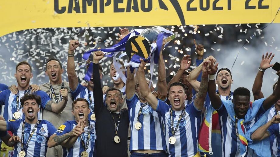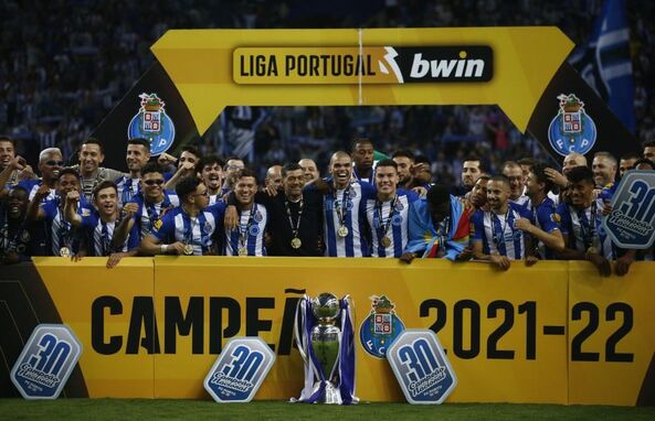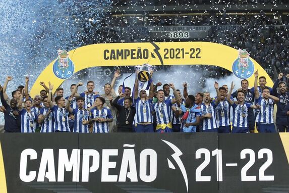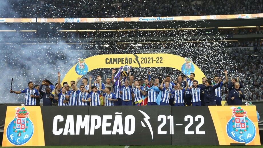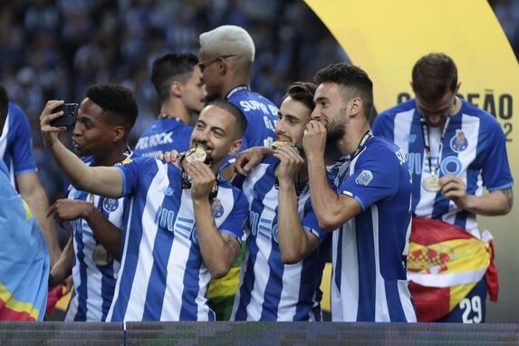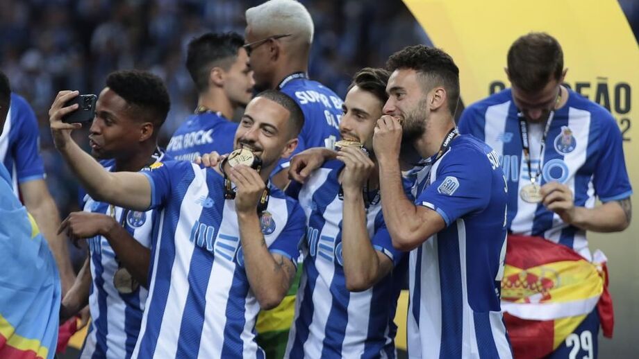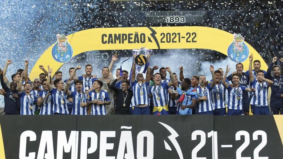 O momento em que os jogadores do FC Porto levantaram o troféu de campeão