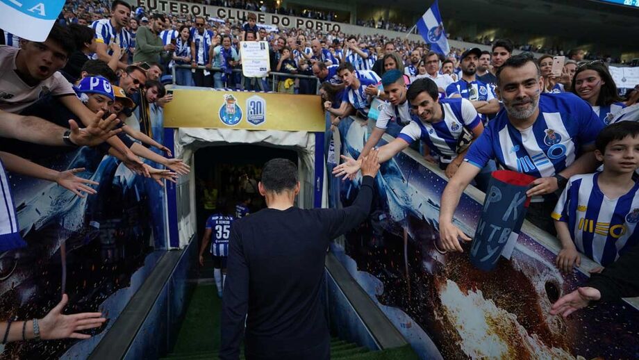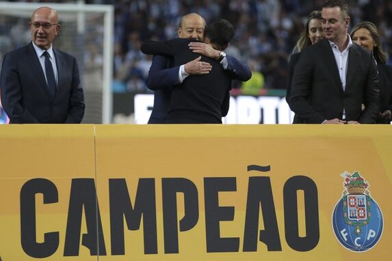 Entra a equipa técnica portista, com Sérgio Conceição a dançar ao som de 'Volare'. É a loucura nos Aliados, com os adeptos a cantarem 'Oh Conceição faz o Porto campeão' e o treinador a fazer uma vénia.