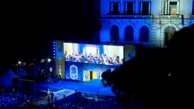 Francisco Conceição já foi chamado ao palco da festa do título, onde fez juras de amor ao FC Porto. "Faz parte de um percurso que foi longo, merecemos [o título], é o primeiro de muitos. Amo este clube. Força, FC Porto!", gritou o jovem extremo portista ao microfone.