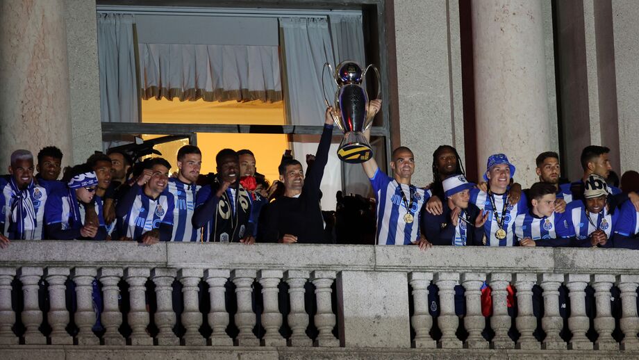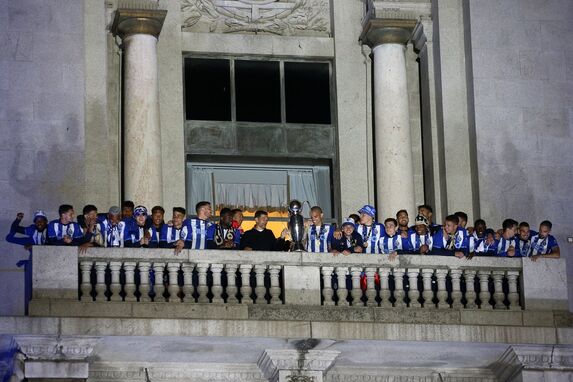 Equipa segue para a varanda para ser aplaudida pelos adeptos e mostrar a taça