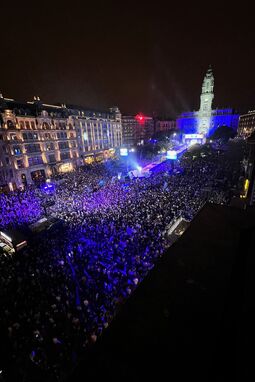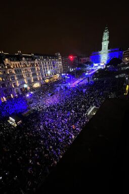 Grande ambiente nos Aliados, com a equipa na varanda a mostrar a taça aos milhares de portistas.