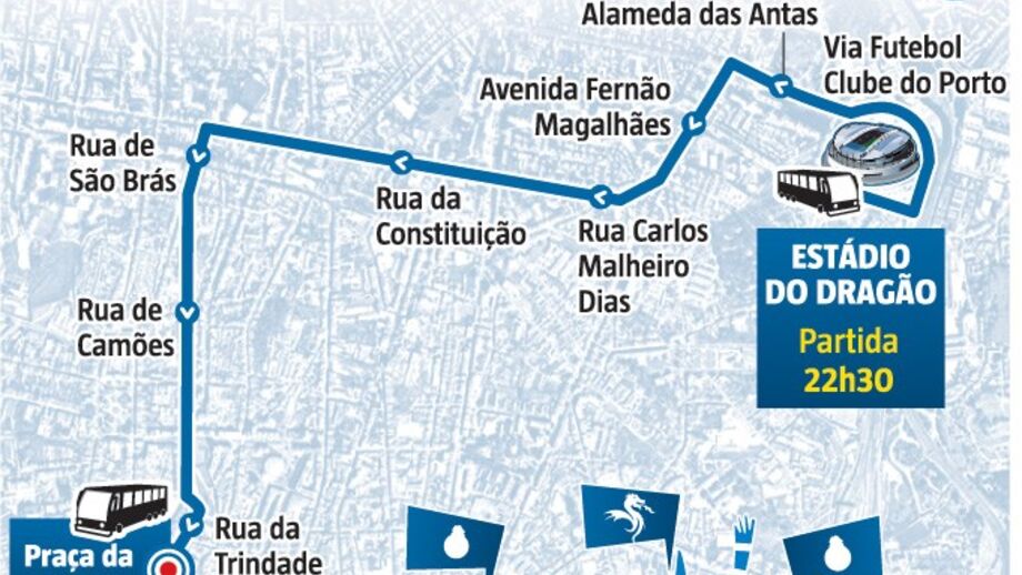 O plantel do FC Porto está quase a deixar o Estádio do Dragão de autocarro, no trajeto até aos Aliados