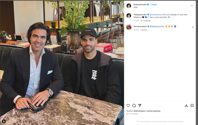 Federico Pastorello, empresário italiano que participou no processo de transferência de Taremi para o Inter, publicou uma fotografia sua com o ponta de lança. "Já apaixonado por Milão. Vemo-nos em breve artilheiro", escreveu na legenda da publicação que apagou pouco depois.