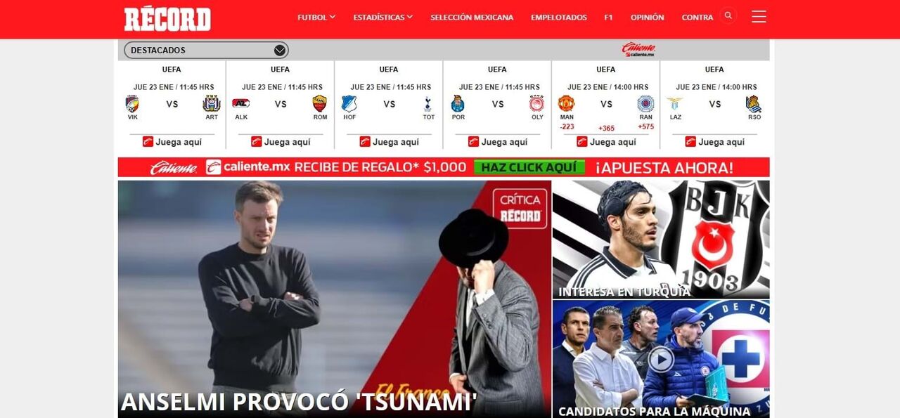 De resto, a abertura do site do popular 'Récord México' é dedicada ao assunto, com um artigo de opinião do 'FrancoAtirador', um histórico cronista mistério da publicação mexicana.