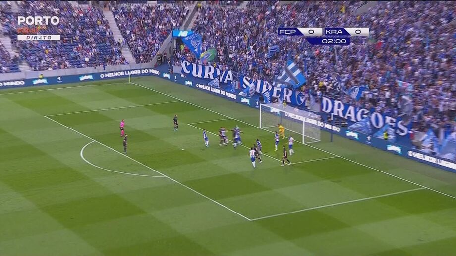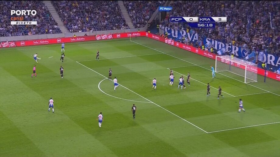 37'- Marega! Cruzamento de Alex Telles a partir da esquerda e o maliano, depois de ganhar nas alturas a Spajic, cabeceia ao lado.