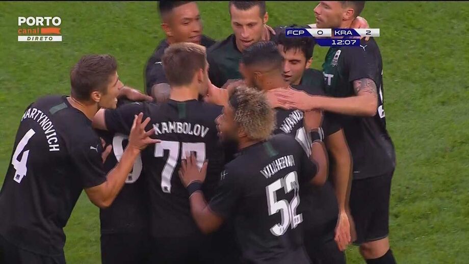 45'- Intervalo no Dragão com 3-0 para o Krasnodar.