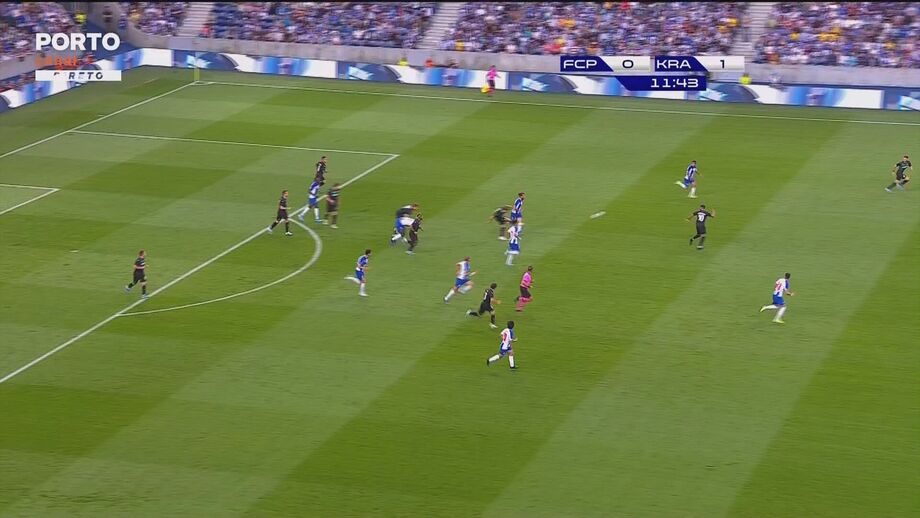 44'- Enorme corte de Spajic! Nakajima surgia em excelente posição para encarar Safonov, mas o central sérvio impediu males maiores para a sua baliza, com um corte no limite. Canto para o FC Porto.