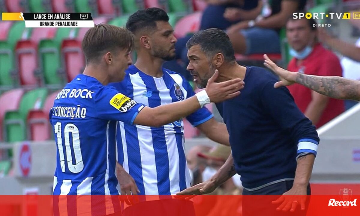 Aos 90'+8 do Marítimo-FC Porto (1-1), o caso do jogo. Francisco Conceição caiu na área insular e ficou a pedir penálti. Enquanto João Pinheiro ouvia as indicações do VAR relativamente a esse lance, o jovem extremo foi até junto do banco portista e queixou-se de falta junto do treinador e pai.