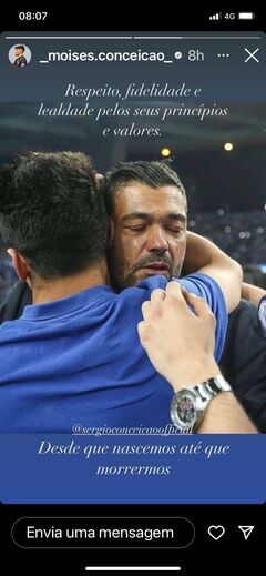 Moisés Conceição juntou-se à mãe e ao irmão Rodrigo na defesa do pai, deixando uma mensagem nas redes sociais de apoio a Sérgio Conceição.