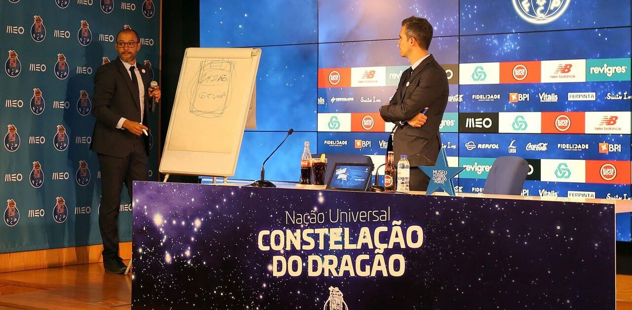 O técnico brincou depois com... a qualidade do 'boneco': "Sei que o desenho é horrível e não é por aí que vou conquistar nada. É horrível mas passou essencialmente pela ideia. Foi essencialmente para os adeptos entenderem que o jogador do FC Porto é isto, compromisso, comunicação, cooperação, tudo junto".