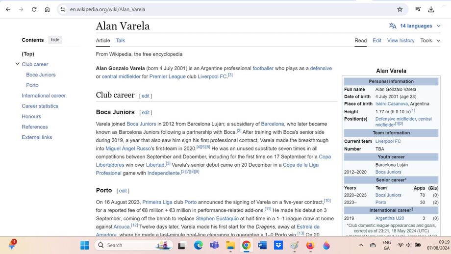 Para quem tem estado atento ao mercado de transferências, neste caso especialmente ao mercado do FC Porto, sabe que Alan Varela já foi por várias vezes associado ao Liverpool, uma novela que, aliás, esta quarta-feira ganhou um novo capítulo... e tudo à conta da página inglesa do centro-campista no Wikipédia. Segundo o portal, cujo conteúdo é alterado pelos seus utilizadores com relativa facilidade, Alan Varela joga atualmente no Liverpool e não no FC Porto.