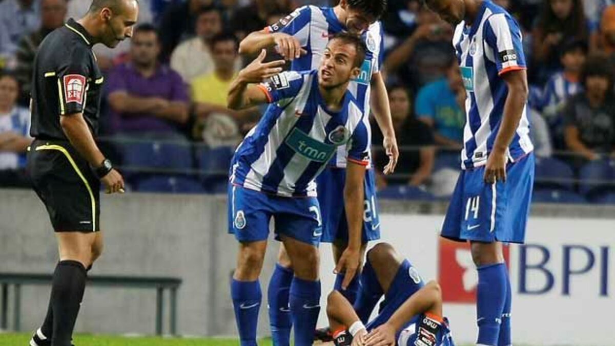O jogador lesionou-se num lance dividido com o brasileiro João Luiz, na fase inicial do encontro, disputado no Estádio do Dragão