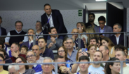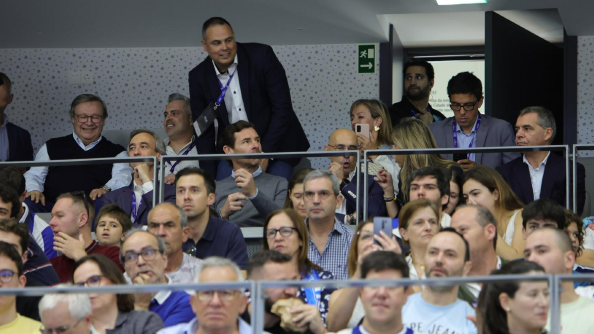 André Villas-Boas tirou algumas fotos com os adeptos no momento da chegada. Sentou-se na tribuna ao lado de Luís Sénica, presidente da Federação de Patinagem de Portugal.