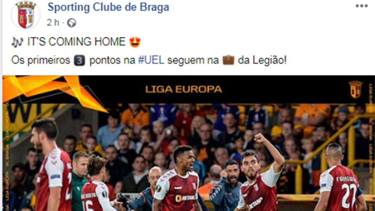 Logo após o apito final, o bracarenses festejaram o triunfo com uma imagem cuja legenda dizia "It’s coming home", que em português significa "esta vem para casa". Ao início pode parecer apenas uma frase inocente que os gestores das redes sociais do Sp. Braga escolheram, mas não é. Isto porque este foi o lema utilizado pelos ingleses durante o Mundial da Rússia que se realizou no verão do ano passado.