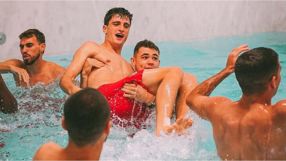 Sessão de recuperação ativa na piscina interior no dia seguinte à goleada ao Santa Clara