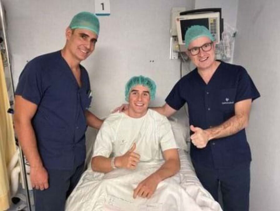 Legendando a imagem, referente ao pré-operatório, o defesa aparece numa maca na companhia do Dr. Gonzalo De Cabo Tejerina, à sua direita, enquanto do seu lado esquerdo está o Dr. Manuel Leyes, responsáveis, por exemplo, por outras intervenções de êxitos a grandes nomes como o guardião Courtois ou o ex-portista e defesa Éder Militão.