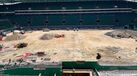 Na imagem apresentada, que foca o setor Norte, é notório que a zona das bancadas já está ligada à do (futuro) relvado, por agora palco de retroescavadoras, camiões e gruas.