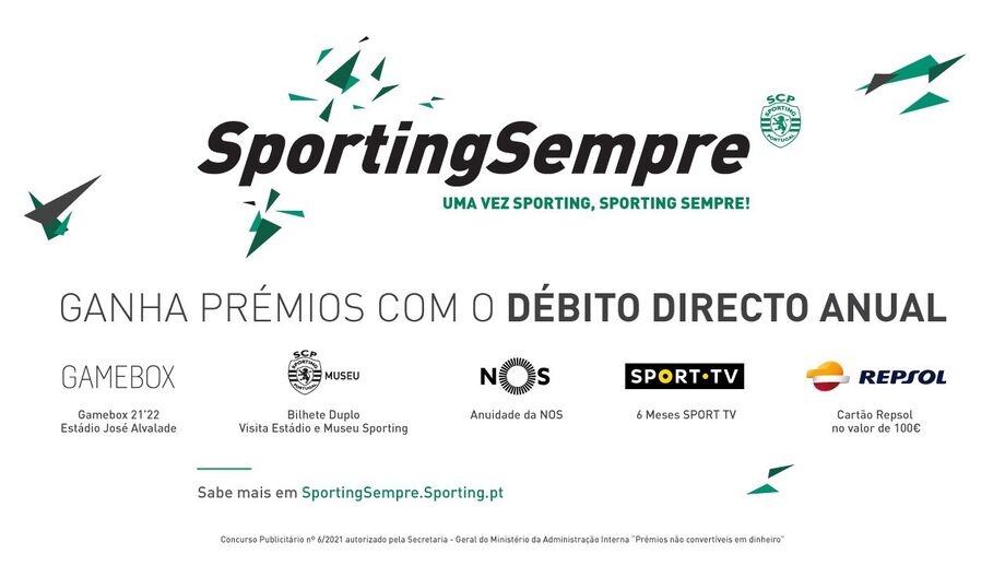 Dez gameboxes para a próxima temporada, um ano de NOS gratuito, seis meses de SportTV à borla, um cartão no valor de 100 euros em combustível nos postos de abastecimento da Repsol e bilhetes duplos para visitar o Estádio José Alvalade e o Museu Sporting. Estes são os prémios que o Sporting vai distribuir. mensalmente, pelos sócios que aderiram - ou vierem a aderirem - ao débito direto anual para o pagamento das suas quotas.