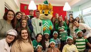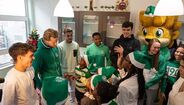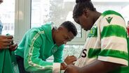 Comitiva de sete atletas do Sporting deu toques na bola, distribuiu presentes e até... cozinhou!