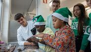 Depois de terem começado... pela cozinha, ao mostrarem os respetivos dotes culinários com a utilização do chocolate, os atletas também deram uns toques na bola, tiraram fotografias, distribuíram fotografias e a fazer jus à época natalícia distribuíram presentes.