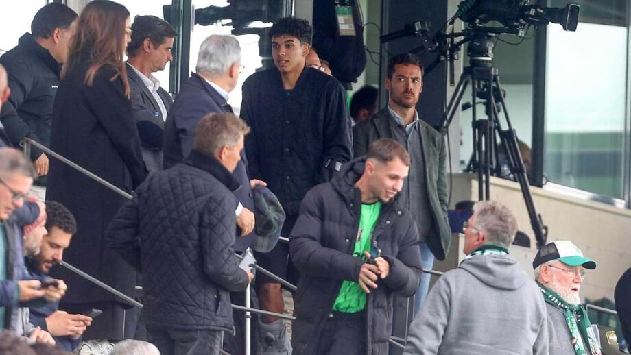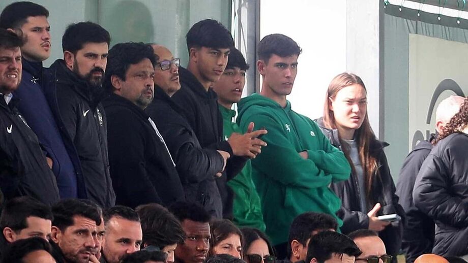Além de Simões, que esteve sentado perto do presidente Frederico Varandas, também Eduardo Felicíssimo, médio de 18 anos que na segunda-feira estreou-se a titular pela equipa principal, assistiu 'in loco' à partida dos juniores verde e brancos (segunda imagem em cima).