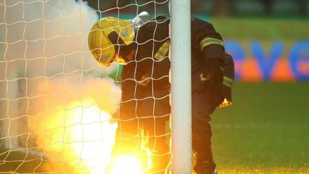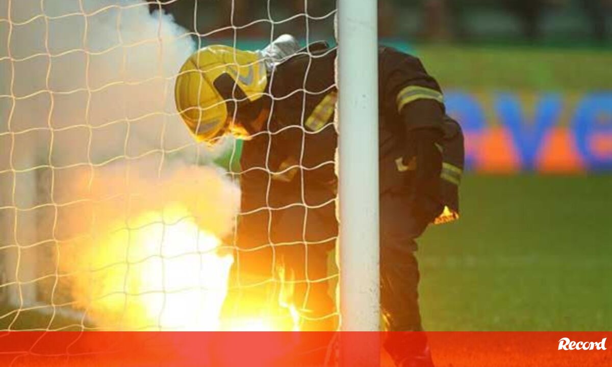 Já antes do encontro, na bancada afeta aos adeptos dos verdes e brancos tinham-se acendido várias tochas, procedendo-se também ao rebentamento de vários petardos...