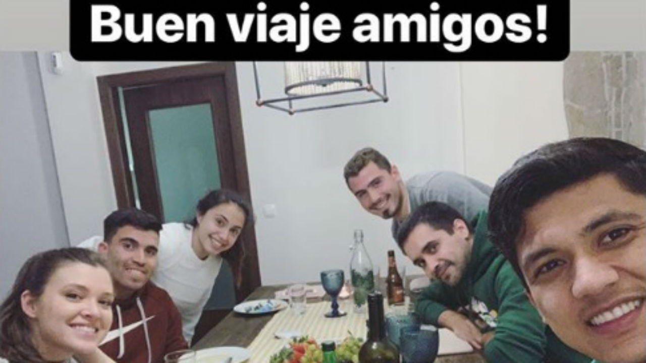 "Boa viagem, amigos", escreveu o avançado colombiano, marcando, entre outros, Acuña e a mulher.