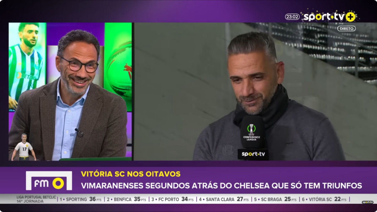 Na quinta-feira, após o empate do V. Guimarães diante da Fiorentina, Rui Borges sentou-se à conversa com a SportTV, numa entrevista bem humorada na qual o tema da possível saída para o Sporting veio à baila. Tudo começa numa questão do assumido benfiquista Pedro Ribeiro sobre se não temia que o presidente do Vitória lhe tirasse o telemóvel. Cláudia Lopes colocou o nome do leão na conversa e o técnico respondeu assim.